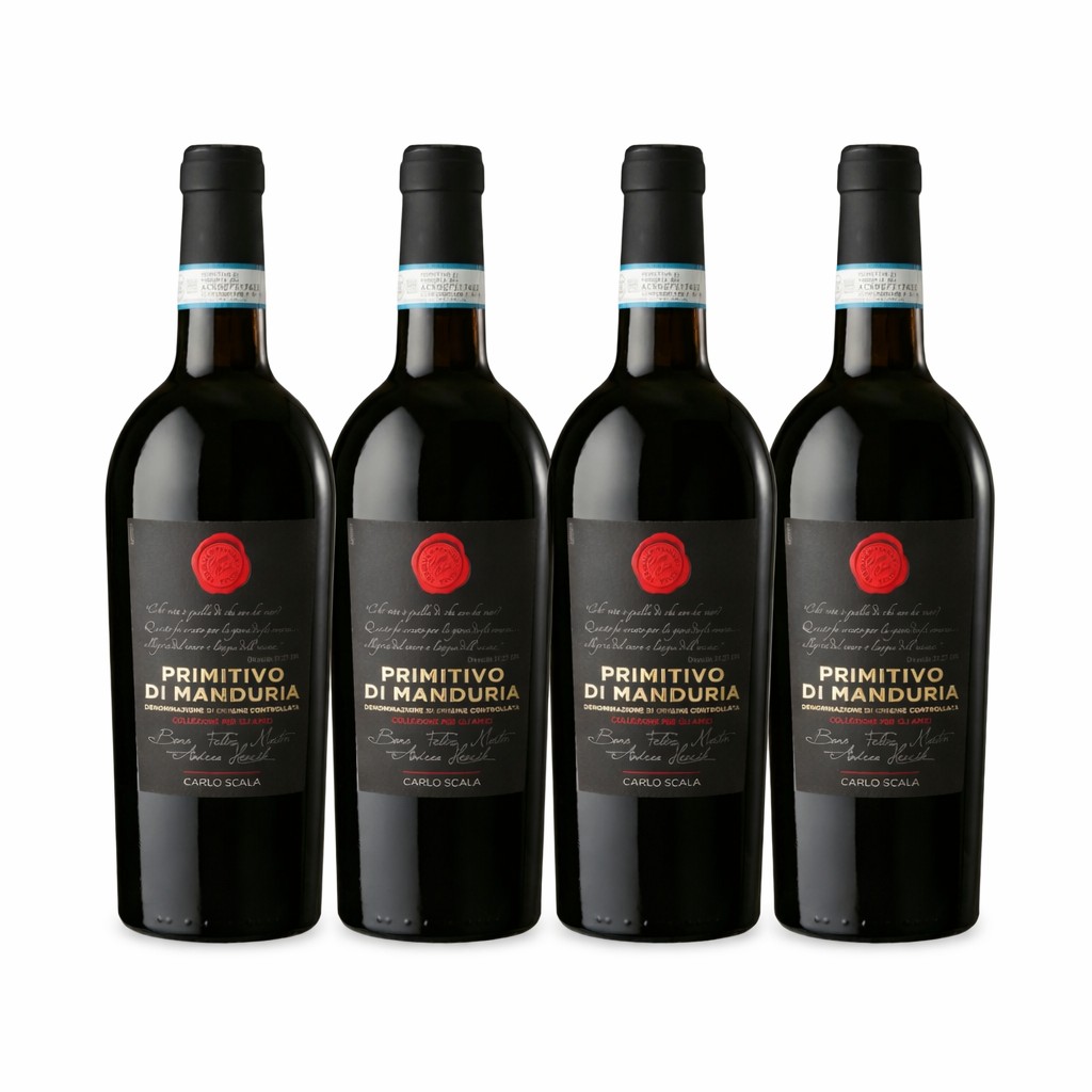 Combo com 4 garrafas de Vinho Tinto Primitivo di Manduria DOC Carlo Scala, 750ml cada.